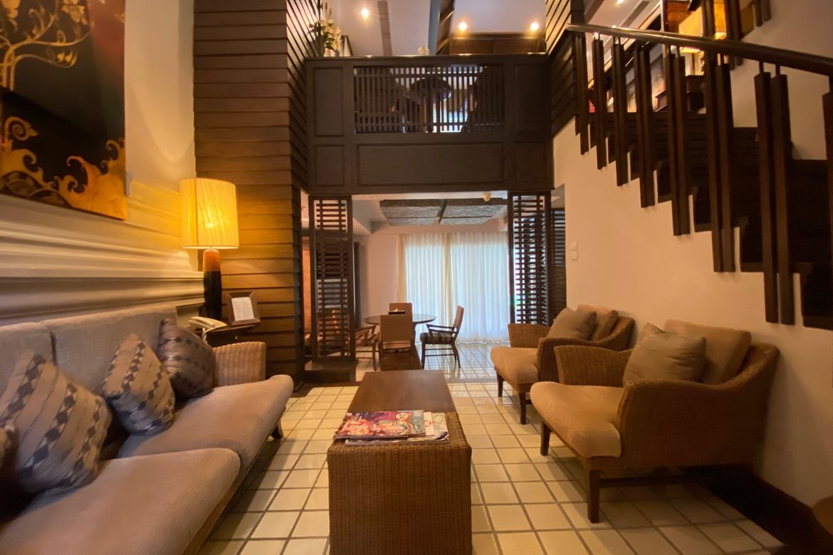 The unit is a 4 storey unit in the Residence zone with the driveway at parking at the rear which is used as main entrance to the house. The ground floor comprises a tall ceiling living area with terracotta flooring, a couple of steps split level to a dining room, a fitted Western kitchen, guest bathroom and a veranda overlooking and with access to the swimming pool. Beautiful and tastefully decorated throughout. Going up to the mezzanine floor there is a lovely family and TV room with a tall alcove ceiling and wooden floor. The third floor comprises an ensuite guest bedroom and the ensuite master bedroom which also has a veranda. Again beautiful wooden floor throughout and featuring wooden alcove ceiling. The bathroom also features a lot of beautiful wood trimmings. The entire resident oozes a luxurious yet cozy feel. The fourth floor has a large terrace for stargazing and an outdoor bathtub. The loft style third bedroom is on this floor which can also be used as an entertainment room. It is ensuite and also comes with a pantry.