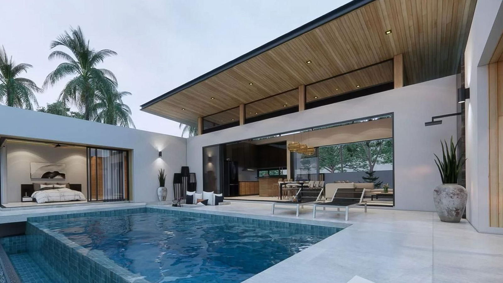 - Open-plan kitchen and dining with pool access