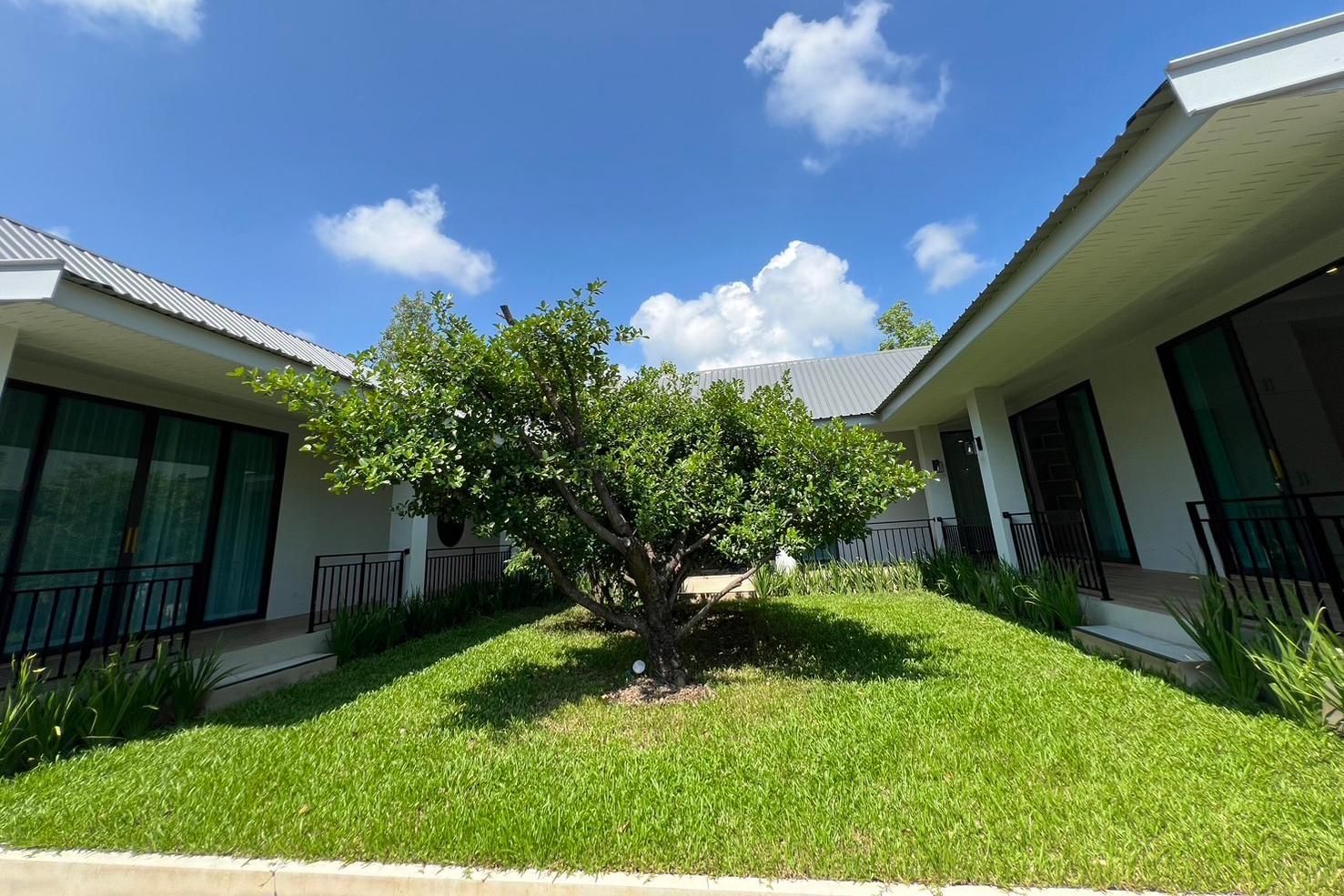 Single story 3 bedroom in Hang Dong about 30 minutes from town in a quiet area just off the main road. Nice garden, open dining area and large western kitchen with modern style interior bedrooms, and bathrooms.