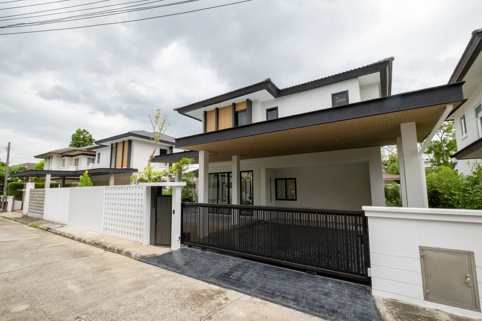 This newly renovated, modern luxury two-story pool villa in the desirable San Kamphaeng area offers 310 square meters of usable space on a 71.7 square wah plot, featuring four bedrooms and four bathrooms, with the master bath boasting a Kohler bathtub, separate shower, and dressing area. The home is meticulously designed with a spacious living room, two fully equipped kitchens including an island and dining area for six, a walk-in closet, and a versatile multipurpose room. Convenience is paramount with fully built-in furniture, Cotto sanitary ware, and a 3 x 6.35 meter saltwater swimming pool, complemented by parking for two cars and an electric remote-controlled gate. Modern living is ensured with seven Daikin air conditioners, a digital door lock, two 65-inch TVs, one 55-inch TV, two large refrigerators, a water heater, three shower heaters, a microwave, oven, hood, washing machine, and dryer. Perfectly situated, the property is a short distance from the U.S. Consulate (CBP) and the new Chiang Mai International School (CMIS) at Payap University.