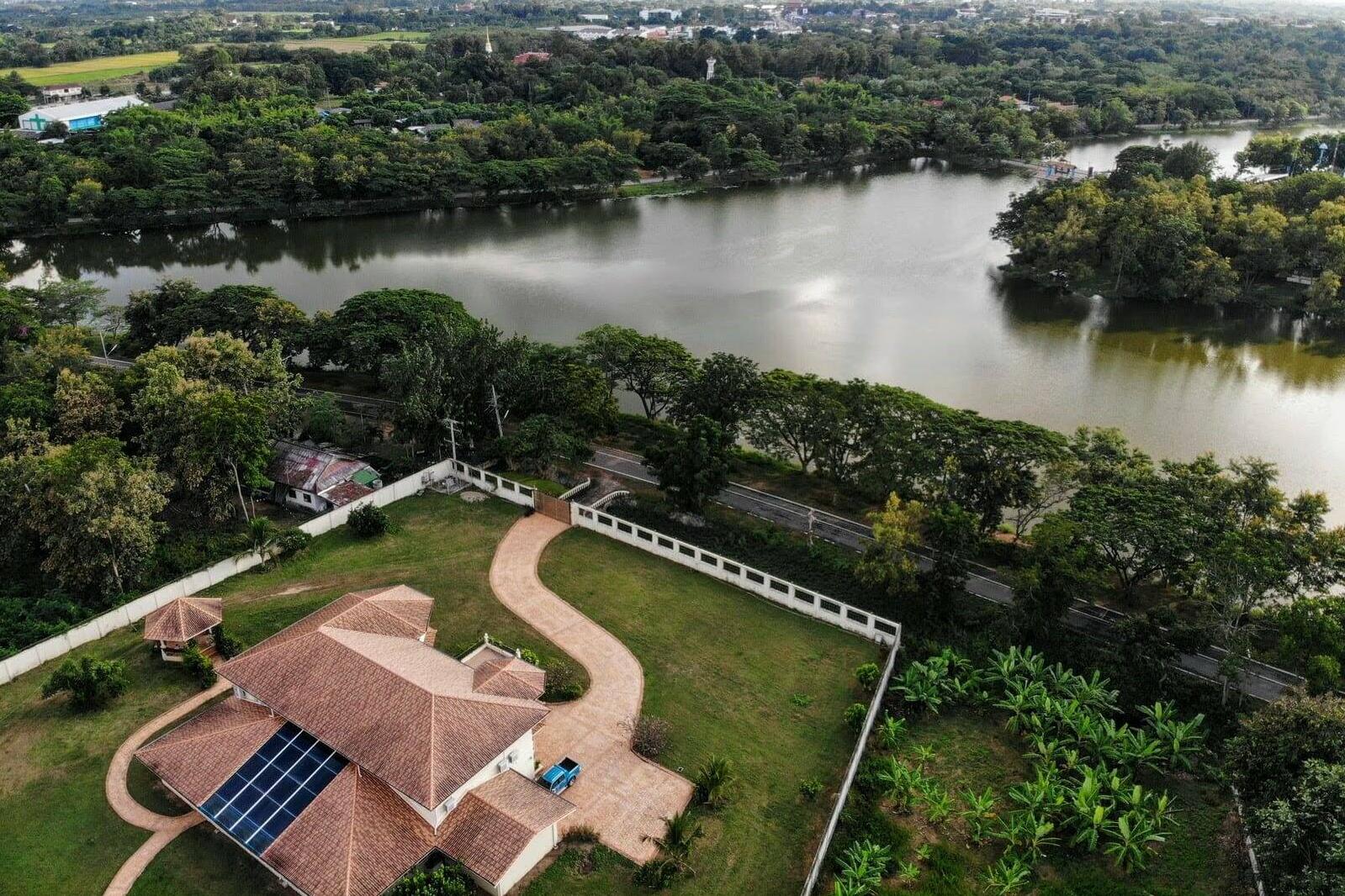 Luxury 5-bedroom, European style house for sale in the San Patong area. The property covers over 4.5 Rai adjacent to a beautiful lake which features water sports like and joggers in the afternoon. The property has a high fence offering great privacy, a private tennis court, garden sala, and covered swimming pool.